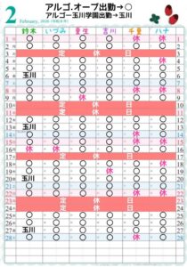 2月、3月の営業日&スタッフ出勤 2026年2月1日 最終更新日時 : 2026年2月1日 アルゴ.オーブ 2月、3月の営業日&スタッフ出勤です 定休日以外で スタッフの休みのシフトが変わる事がございますので都度 ご確認をお願いいたします