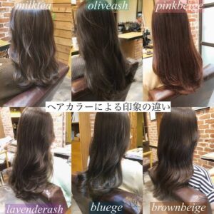同じ明るさでも色味が違うだけでも変化がありますし、さりげなくハイライトを入れてみたりとヘアカラーは無限大です!