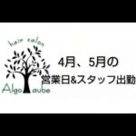 - 4月、5月の営業日&スタッフ出勤生田 生田駅 川崎市多摩区 美容院 美容室 スタッフ カレンダー