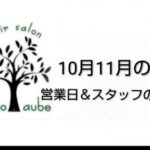 - 10月、11月の営業日&スタッフ出勤日生田 生田駅 多摩区 美容院 美容室 スタッフ カレンダー シフト